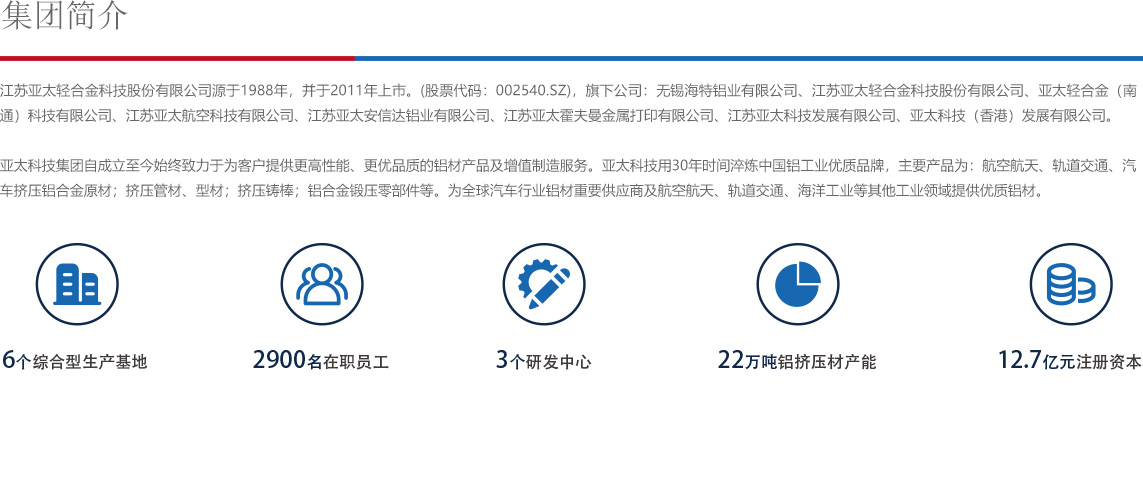 亞太科技始終致力于為客戶提供更高性能、更優(yōu)品質(zhì)的鋁材產(chǎn)品及增值制造服務(wù)。通過在材料、工藝、裝備、應(yīng)用方面不斷創(chuàng)新,在過程、品質(zhì)、交付方面持續(xù)改進(jìn),亞太科技用30年時(shí)間淬煉中國(guó)鋁工業(yè)優(yōu)質(zhì)品牌,成為全球汽車行業(yè)鋁材重要供應(yīng)商及航空航天、軌道交通、海洋工業(yè)等其他工業(yè)領(lǐng)域鋁材優(yōu)質(zhì)供應(yīng)商。